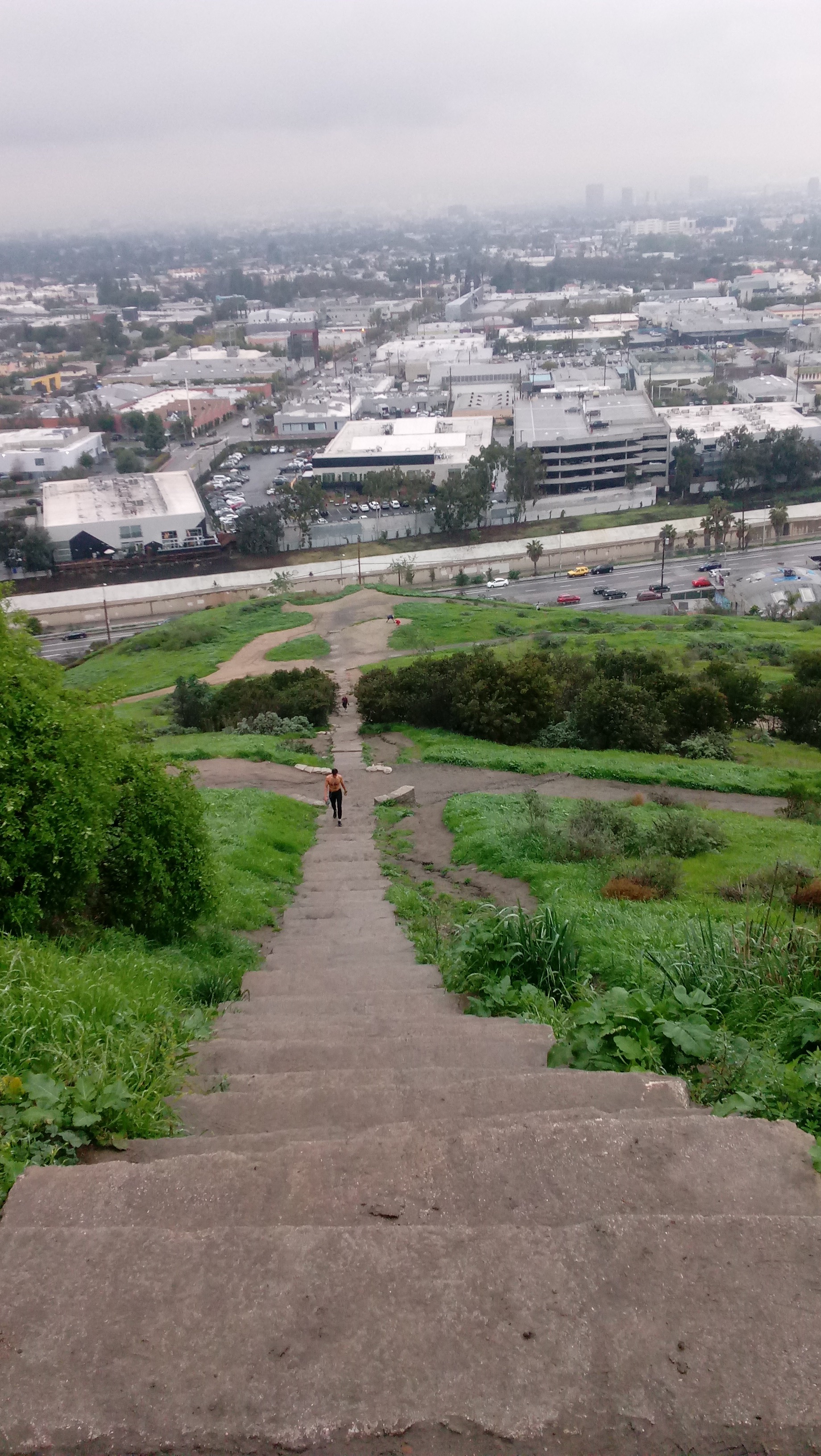 I drive a short way to Culver City, and walk up and down a long flight of stairs a few times. The stairs are uneven, and seem to have been haphazardly jammed into the side of a hill, scrubland either side. This helps bring me back to earth.