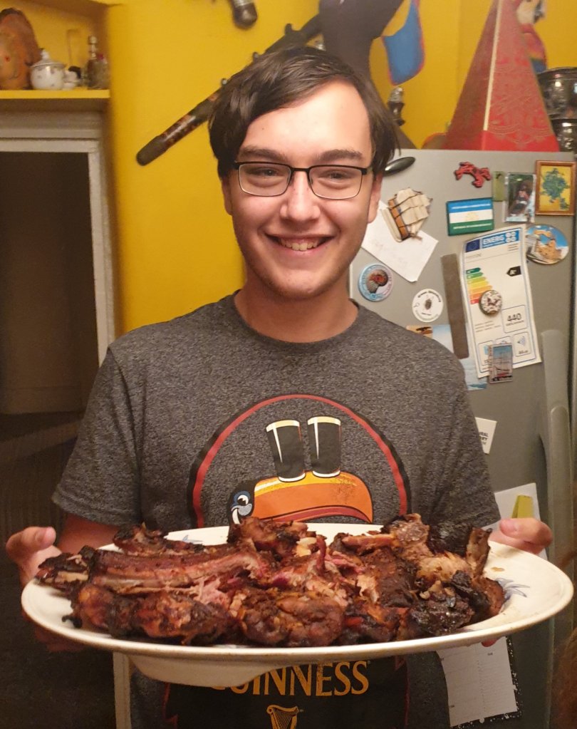 My nephew turned eighteen today – on this cold wet Monday. I took some time out to go and see him and my brother and family, and a huge platter of meat.