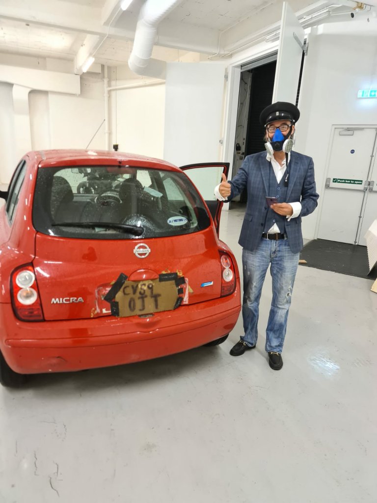 Home from the dentist, build greenscreen – getting good at it now. Do some acting. Book a job driving to Cardiff. Am I even allowed to drive to Cardiff? The van is booked so I’ll find out tomorrow when I get arrested on the Severn Bridge. Drive to Bond Street. See Brian briefly. Get laughed at. Smile with my newly fixed teeth. Realise they’re invisible behind the only mask I own that’s too big for me to easily lose.
