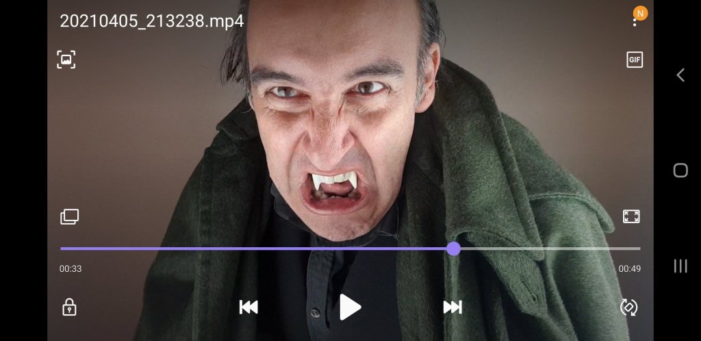 Today I recorded myself playing a friendly vampire. Appropriate considering my nocturnal ways. The teeth are a bastard to keep in, but they were the cheapest ones on the internet. I figured it’d be worth a small outlay to get myself into contention for a fun part. In the absence of a decent vampiric cape, I pressed my father’s green kilt cape into service and it did the trick swimmingly even if it was a bit Sherlock-vampire.