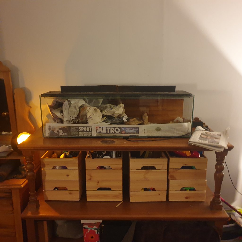 His tank was made for fish. It is exploded at the back as if it was shot, and has been mended by Mel with a plank of wood somehow. I always worry when I carry it. It could never carry water but it holds Hex well enough. The cat chaperones me out and it goes in the back of the car. Off into the ULEZ and I drop it off with Flavia. Last night I dreamt that Mel came back from New Zealand and tried to feed me a mouse instead of Hex. Last night I woke myself lunging for that mouse.