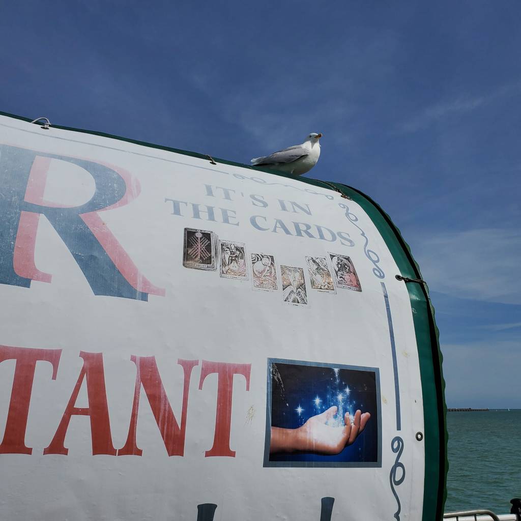 Here’s a blog from my tarot. You might have noticed I’m doing linky things suddenly. Why not?! Time to bring my hits up. So, Ivor… He’s in an old Gypsy Caravan on the way into the pier. Well located. And likely with better cushions than the one I sat in on Carnaby Street etc.