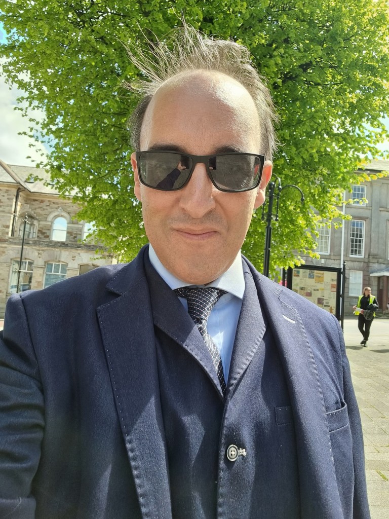I was dressed in one of the many suits I brought down – it’s a quirk of the wardrobe with this team that they quite like you to be dressed in elements of your own clothes. Today I wore a tie that belonged to the dad of my dear friend. It felt like a tribute of sorts even though my character was a total sleazebag. Last time I did this gig I played a literary agent who persuaded the leading lady authoress to fake her own death in order to raise book sales. This time I was channeling Bob Odenkirk as a slightly off key lawyer.