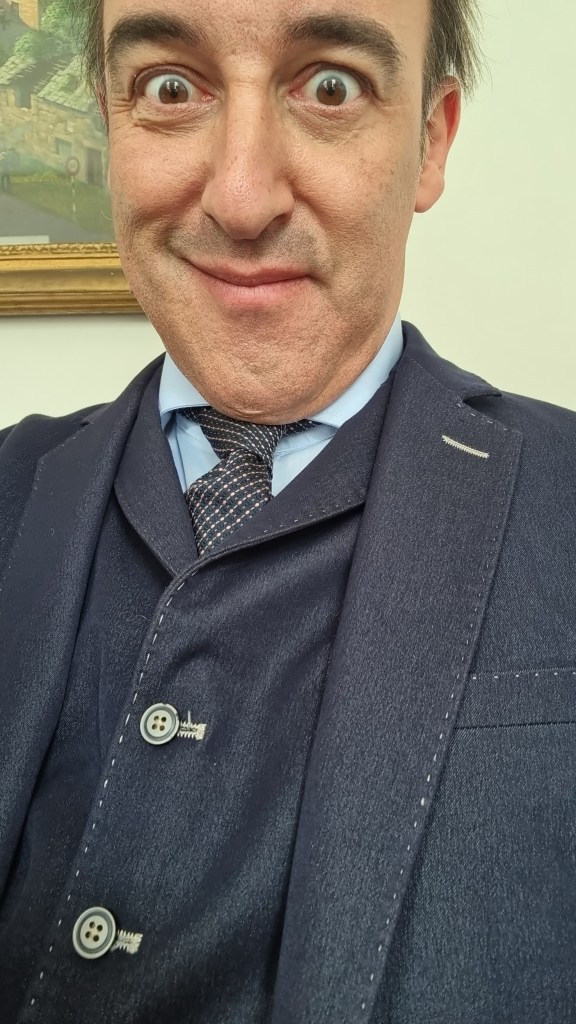 I was dressed in one of the many suits I brought down – it’s a quirk of the wardrobe with this team that they quite like you to be dressed in elements of your own clothes. Today I wore a tie that belonged to the dad of my dear friend. It felt like a tribute of sorts even though my character was a total sleazebag. Last time I did this gig I played a literary agent who persuaded the leading lady authoress to fake her own death in order to raise book sales. This time I was channeling Bob Odenkirk as a slightly off key lawyer.