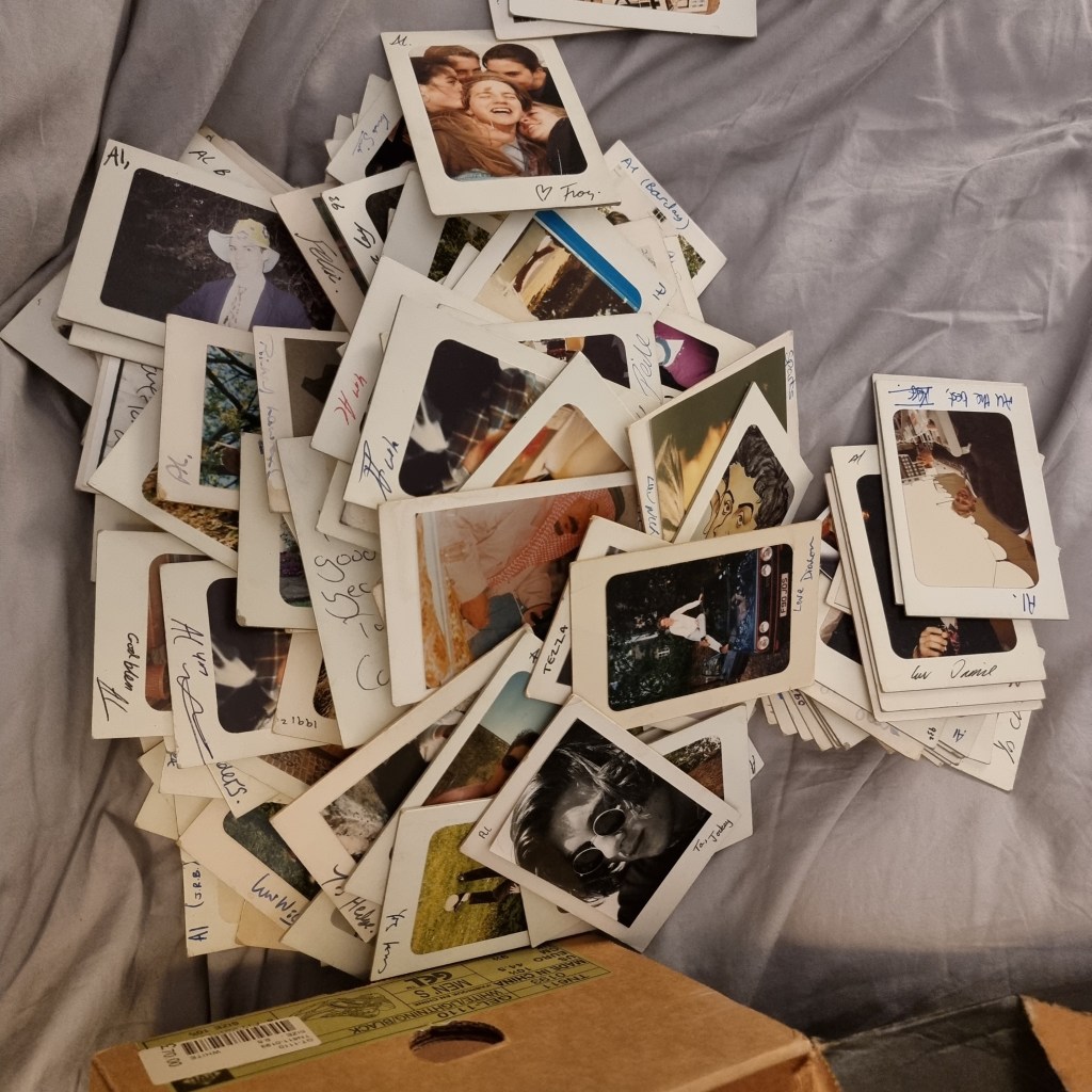 I found a box of cards people had given me when they left that place. Mostly kind, occasionally insulting amusing and thoughtful snatches of the late eighties and early nineties. Young people trying to encapsulate difficult thoughts. Some of them bubbled to the top – the ones who didn’t make it through adolescence by their own hand. Kind hearts. Two of them, forever 19. Sad photos to see, sad notes to read. Others I know are gone too through illness and bad luck. And then, flip it – others who are famous. A mixed bag. My crew. My weird school crowd. Some were contributing to whatever it was that gave me this huge will to live and love. I still don’t really know where it came from, or when it started. I remember when I didn’t have it. But now it runs alongside the oblivion drive. Recently it has been so strong it’s the only drive I feel sometimes.