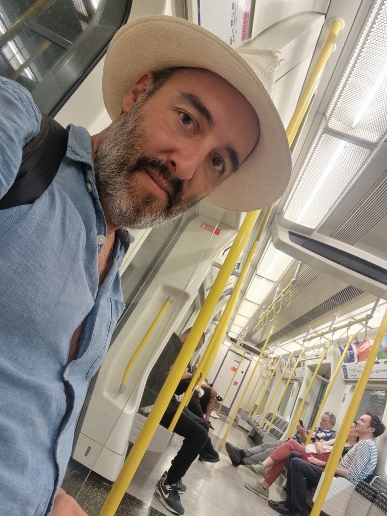 I just don’t remember it being this bad, on the tube. It’s so hot I can feel the sweat trickling down my back. The front of my fresh laundered linen shirt is soaking wet in patches. The air is so still in here, and so close. Every inch of space is taken up with people. I’ve managed to get a seat, and I’m writing to you as my neck and forehead trickle, in the hopes that this will all be over soon. Kings Cross next stop. I’m going to Finsbury Park. I’ll go home by bus, as this is unbearable. The constant chatter of all the conversations in all the languages. Children screaming. The regular announcements too slow, too slow. And when we move, occasionally, the little cooler whiff of moving air from the window at the end, barely getting past the crowd of bodies here to where I’m sweltering into my phone at you. A moment of unsatisfactory relief.