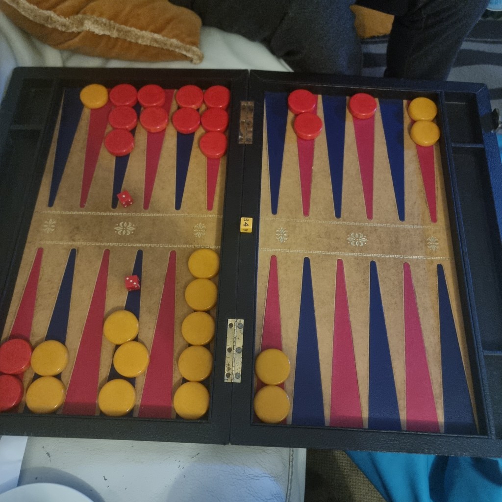 Around the conversation, Tristan and I managed to fit in some games of Backgammon on dad’s amazing board. It’s the only photo I took, when I suddenly remembered I’d need one for the daily musing…