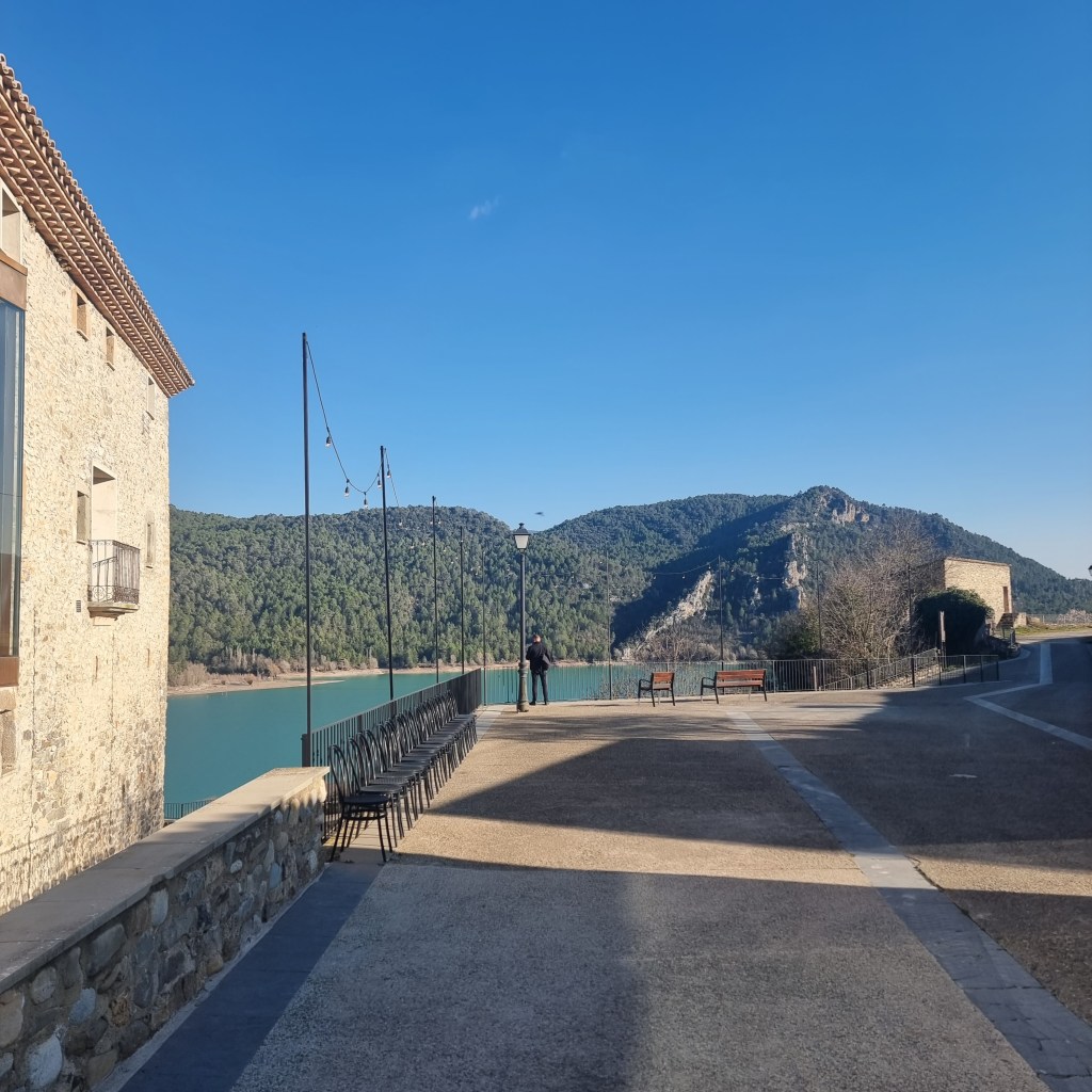 At lunchtime we tried a place that is an albergue for pilgrims on Camino. We are in that familiar territory now. The owner’s son was having a kidney transplant, and an extraordinary sunpickled woman (“She could have been Andean!”) directed us to Entremont restaurant in Liguerre, just five minutes away. There we had one of the best priced and thought out set menus I’ve ever had in Spain, bearing in mind all the weeks of Camino. An incredible lunch. One to remember. In a beautiful place.
