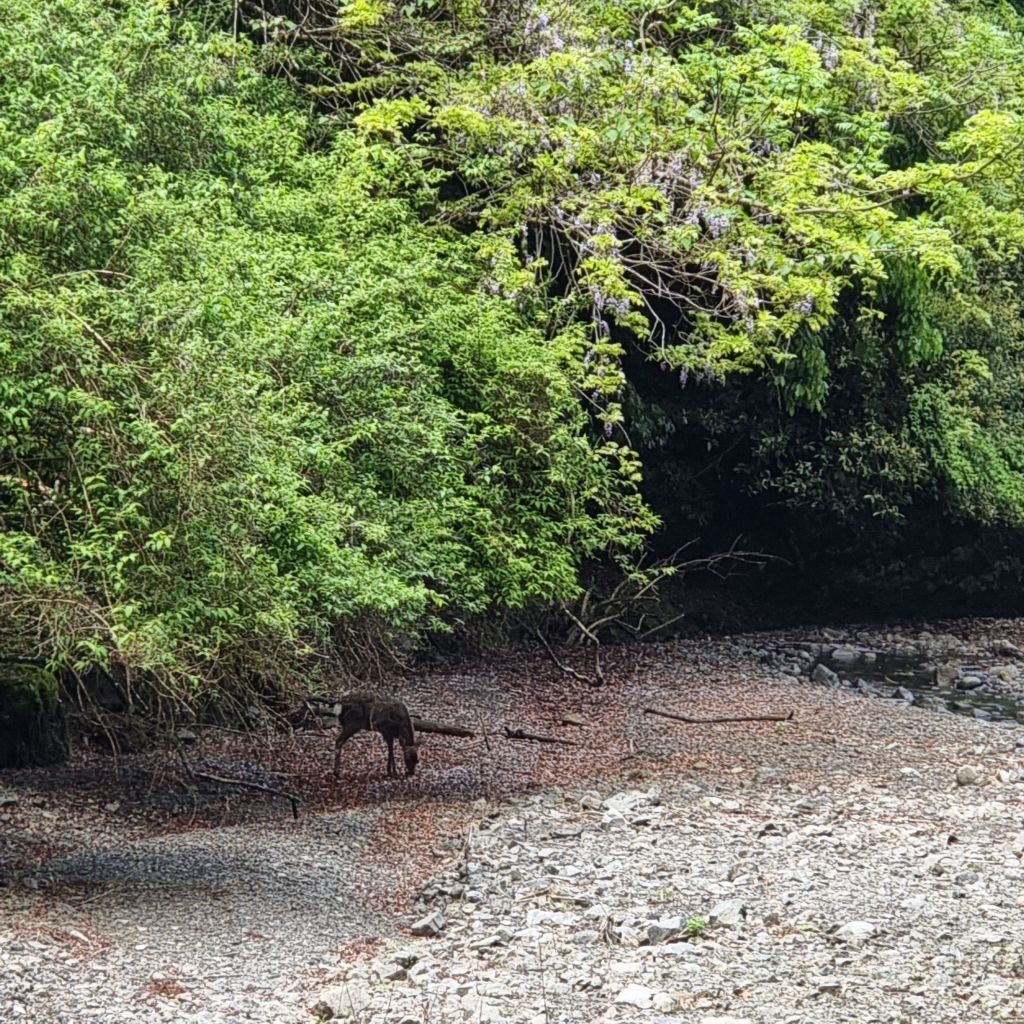 A deer, trying to determine if we were a threat. At one point a crab crosses the path. And the rain brings out some unexpected travelling companions.