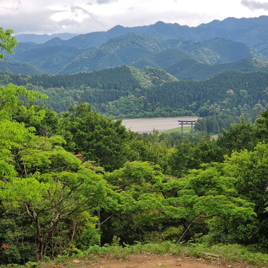 Eventually, at the top of a hill, I caught a glimpse of the town where I woke up, and the massive torii-gate I walked out of at dusk last night.