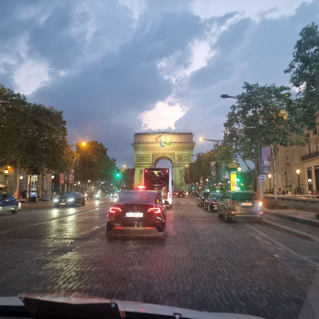 “No smoking. No farting. No sudden braking.” I’m not driving. Ali is. “We probably don’t need to go this way,” he says. We are going up the Champs Elysee. “How often do you get to do that?” he says.
