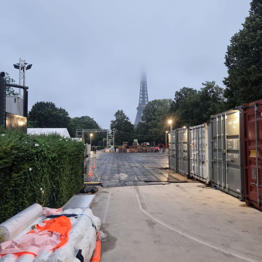 I’m quite proud of myself for letting myself stop, and I’m happy Ffi saw it and immediately took the slack. It’s a calm before a storm right now, despite meteorology. It’s time to rest, having been on go go go. I’ll sleep a proper sleep tonight. And I really know this crap now, even if some venue managers and security are making it hard – the key is to handball over time. Very few deliveries won’t clear pedestrian security if you speak French, have Tools of Trade Sticker and don’t give up. Van entry is generally fucked as the local security team keep moving the goalposts and restricting delivery windows even though they are manned full time. I’m sure it’s because someone has decided that signs are never important, and that’s my Macguffin for being here on response. Tell Alexis at VEL that signs aren’t important, now he’s got a massive load of rapid staples and a gun that will stop them from falling on the cyclists. Tell Herless at DEF that they aren’t important when I found some sealant that will make damn sure nothing falls in the pool mid race. Prevention is always invisible. That’s the point. And I’m on a lot more than just signs.